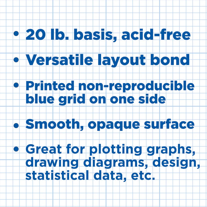 • Premium Quality - The 20 pound base paper is acid free and printed with a non-reproducible blue grid on one side. The paper surface is smooth and opaque.