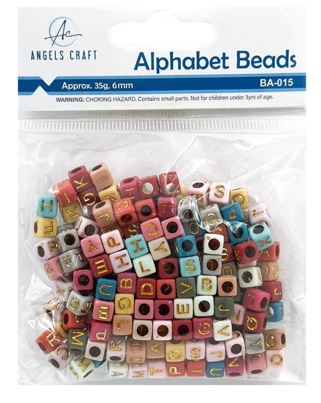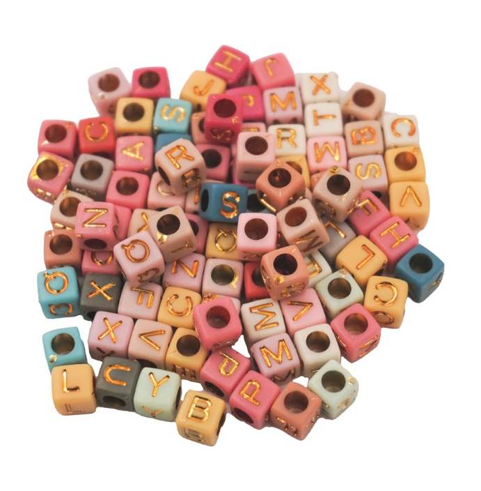 35g Alphabet Beads: Squared: Neutral Color Asst: Size: 0.24"