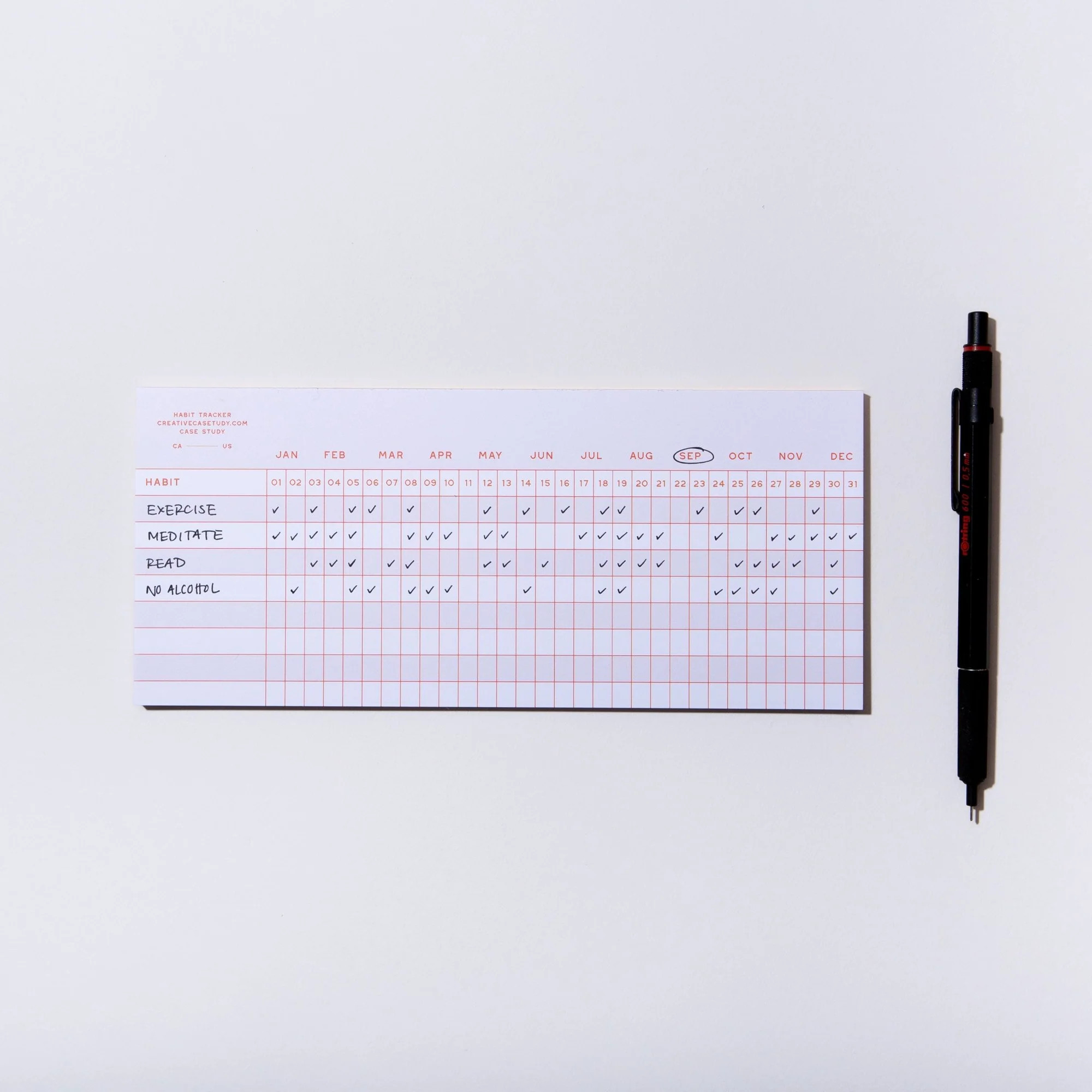 Each page is dedicated to a single month, providing ample space for you to record and monitor your daily habits. Whether you're aiming to exercise more, eat healthier, read regularly, or cultivate mindfulness, this notepad helps you keep tabs on your goals.