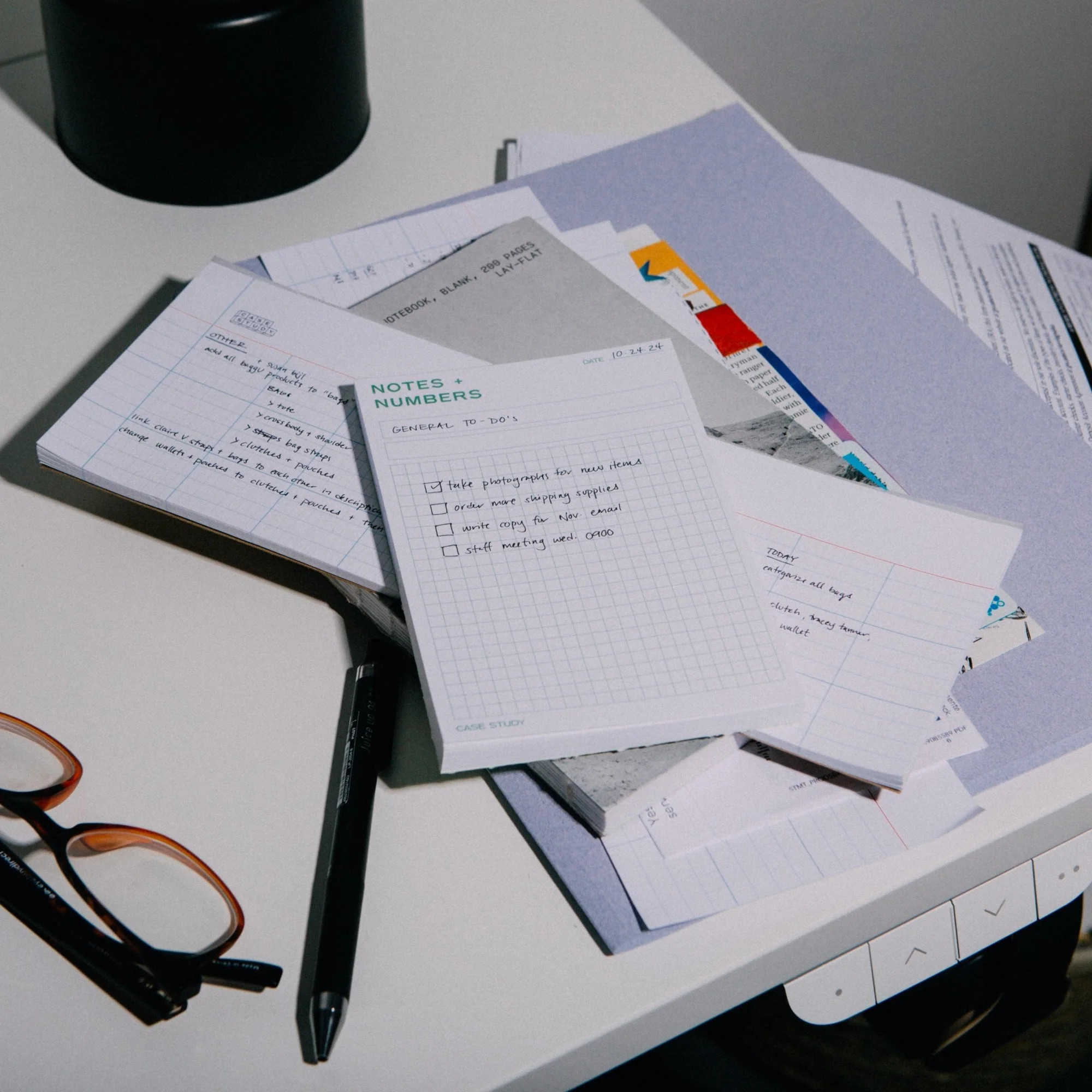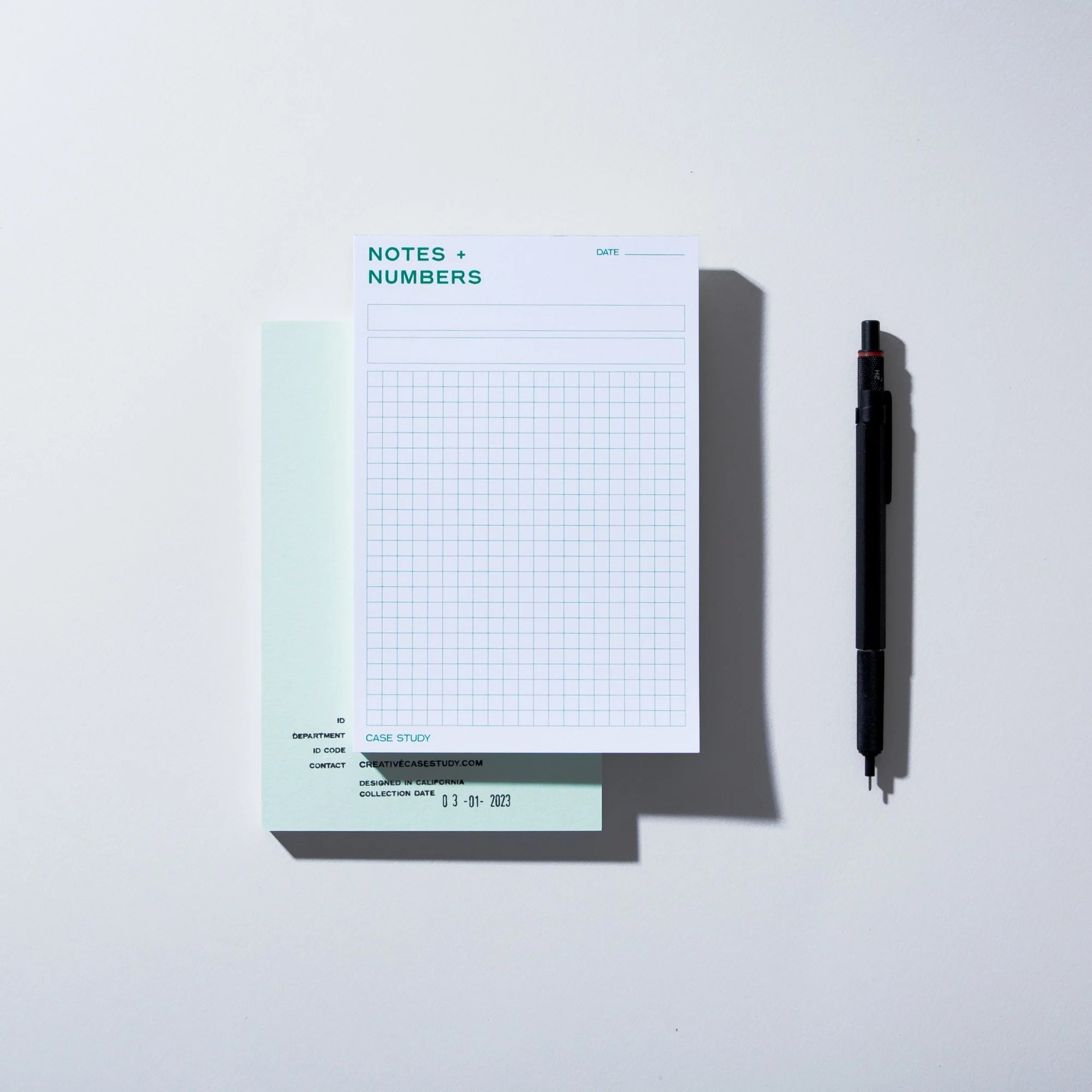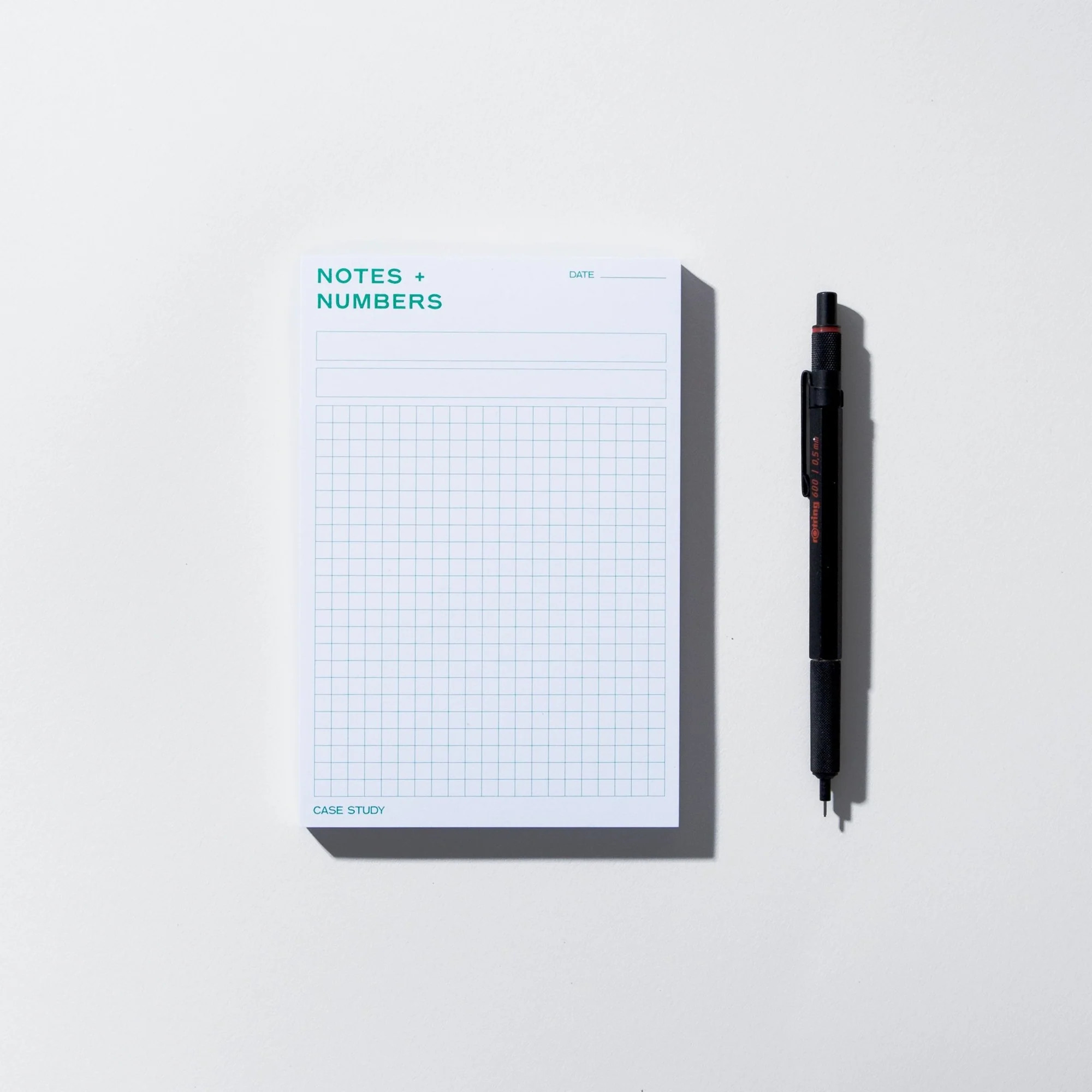 The Notes + Numbers gridded notepad provides a backdrop for taking notes, recording important numbers, and doodling creative ideas.