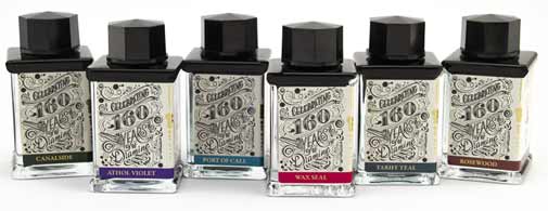 Introducing the collection of Diamine 160th Anniversary Ink.  Adding to our great collections of fine inks. The 160th Anniversary Ink offers 6 refreshing colors in a 75 ml. bottle.