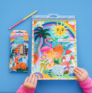 Explore a sunny fantasy with this delightful sketchbook illustrated by Sarah Walsh. Brimming with lush color and adorable animals, this spiral-bound pad will make a lovely addition to any young artist's supplies. Perfect for sketching sessions on-the-go or for art projects around the house. Pairs with the matching Fawn and Sun 12 Double-Sided Color Pencils.