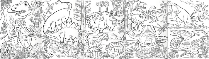 High quality color pencils with 16 colors with a long and detailed fold-out mural to color, filled with dinosaurs and prehistoric plants.