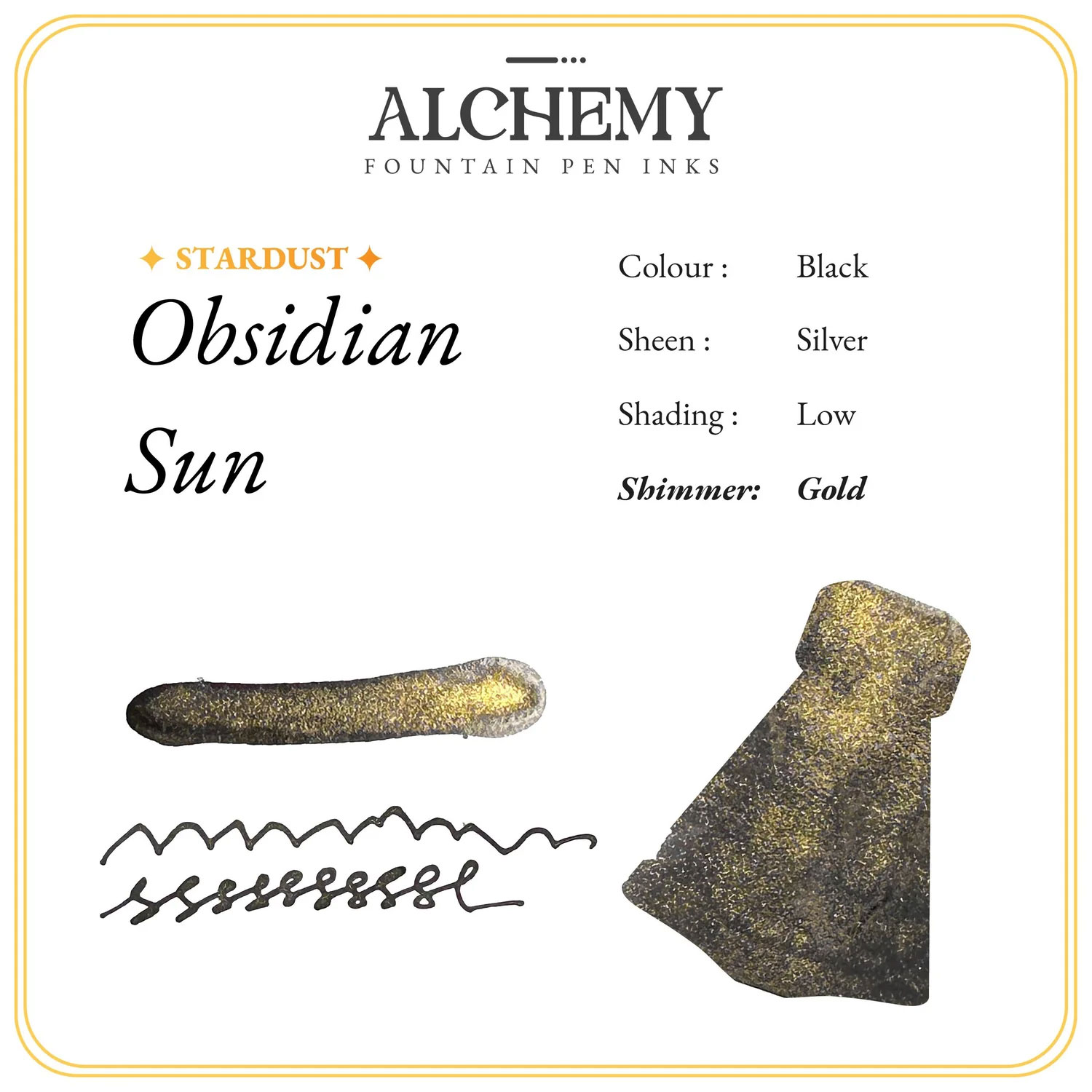 Endless Alchemy Obsidian Sun 45ml bottled ink is a deep black ink with gold shimmer.