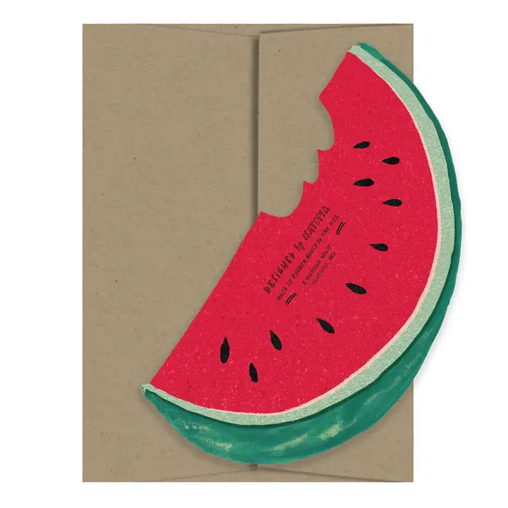 A sweet slice of summer, this die-cut card adds a playful pop of color to any note! Perfect for birthdays, thank-yous, or any occasion that call for a little sunshine.