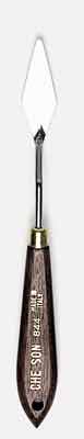 CHE SON STEEL PALETTE and PAINTING KNIVES: One piece tempered steel. For painting in the impasto technique, or for mixing and scraping paint, these steel trowel-style blades are great. This line offers a selection of 36 different blade shapes. Hand-forged by the same family for over 100 years, each knife is mounted to a hand-polished rosewood handle. The size and shape of the blade will result in great differences in spring and control.