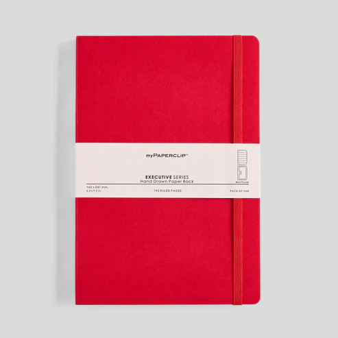 MyPaperclip Executive Series Notebook Soft Cover Large 6.5x9.5" Ruled Red