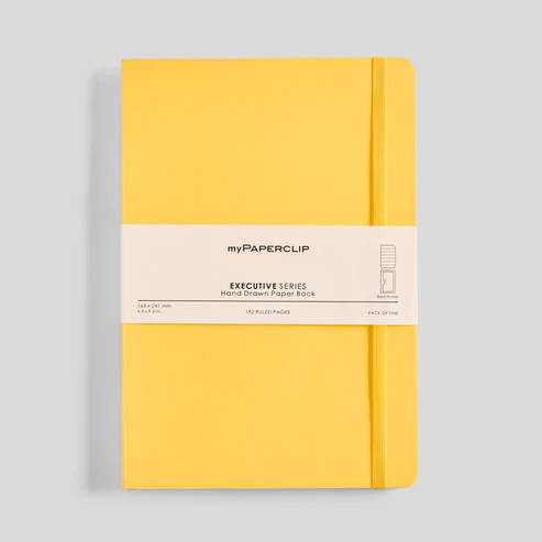 MyPaperclip Executive Series Notebook Soft Cover Large 6.5x9.5" Ruled Yellow