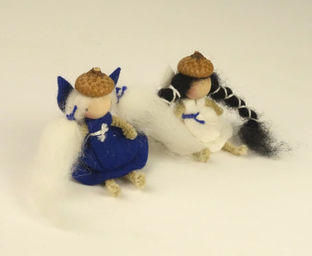 These adorable kits come complete with everything you need to create two beautiful seasonal fairies and outfit them in pre-cut wool felt clothes, wool hair and a cute little acorn hat.