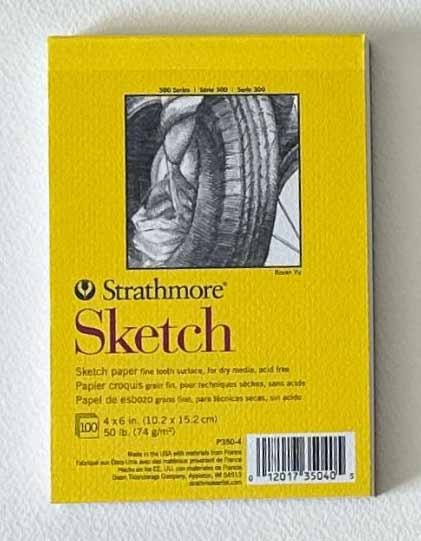 A light weight, natural white, sketch paper with a fine-tooth surface suited for experimentation, practice of techniques or quick studies with any dry media.