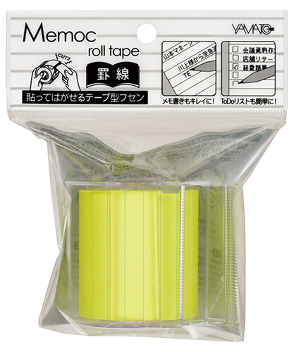 Roll as much sticky note as you need and then easily tear with the dispenser's built-in cutter. The back of the paper is wholly adhesive, so notes stay put but may also be effortlessly removed. Fluorescent yellow with 7mm ruled lines. Ideal for list-making, messages, labels.